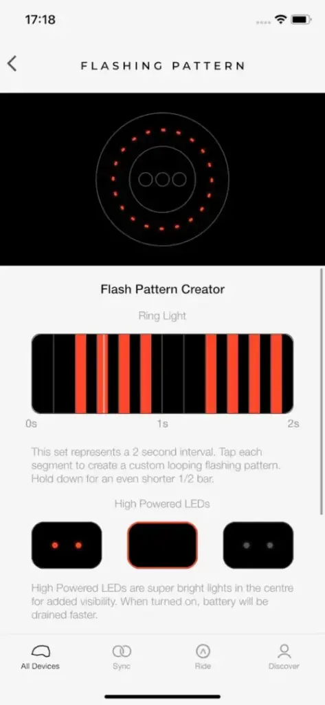 専用アプリ「Ride Lumos」(iOS/Android対応)を使えば、ライトの明るさや点滅パターンを自由にカスタマイズできます。プリセットは3種類まで登録可能で、走行シーンに合わせて使い分けることができます。