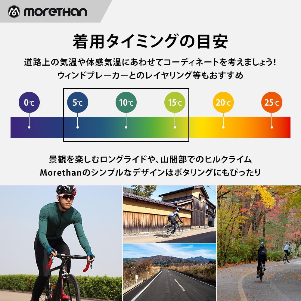Morethanからはウインドブレーカー(WVP-005、WVP-008)やサイクルベスト(WVP-027)も展開されているので、気温に応じてレイヤリングを検討すると良いでしょう。