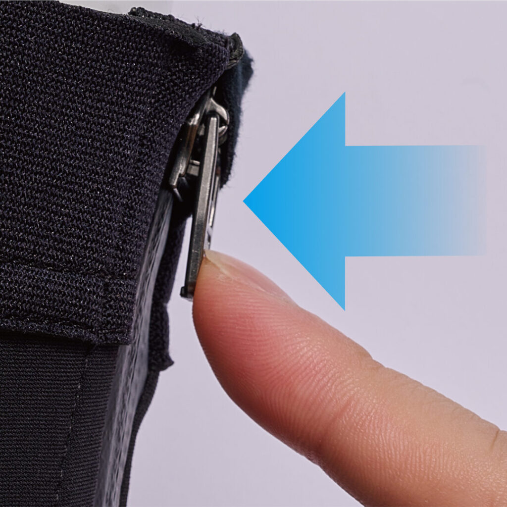 サイドのファスナーにはロック機構が搭載されており、ライド中のずり下がりを防止します。また、超立体構造により高いフィット感を実現。足口にはネオプレーン素材を使用し、しっかりとしたホールド感を提供しています。